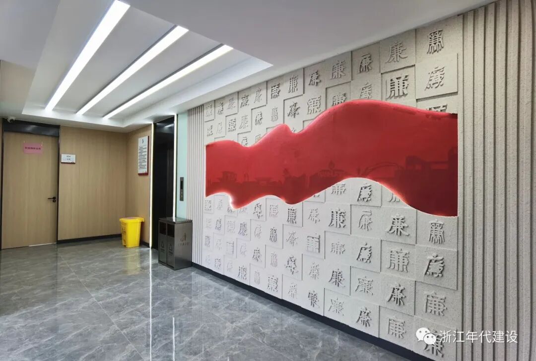 党建、廉洁以红色作为主色调,搭配干净的墙面,形成空间文化形象鲜明的特征。版面设计简洁明快,结合线、弧、方体对比组合构成,凸显大气质感。特提炼出“灵透之材、蓬勃之势”为主题,用象征化的表现手法、多元化的设计元素,让空间风格与整体建筑特点协调统一,营造清新大气的氛围。